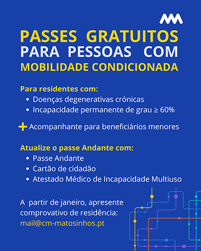 Este apoio destina-se a residentes no concelho de Matosinhos que sejam portadores de doenças degenerativas crónicas ou que apresentem incapacidade permanente com grau igual ou superior a 60%, devidamente comprovada através de Atestado Médico de Incapacidade Multiuso.